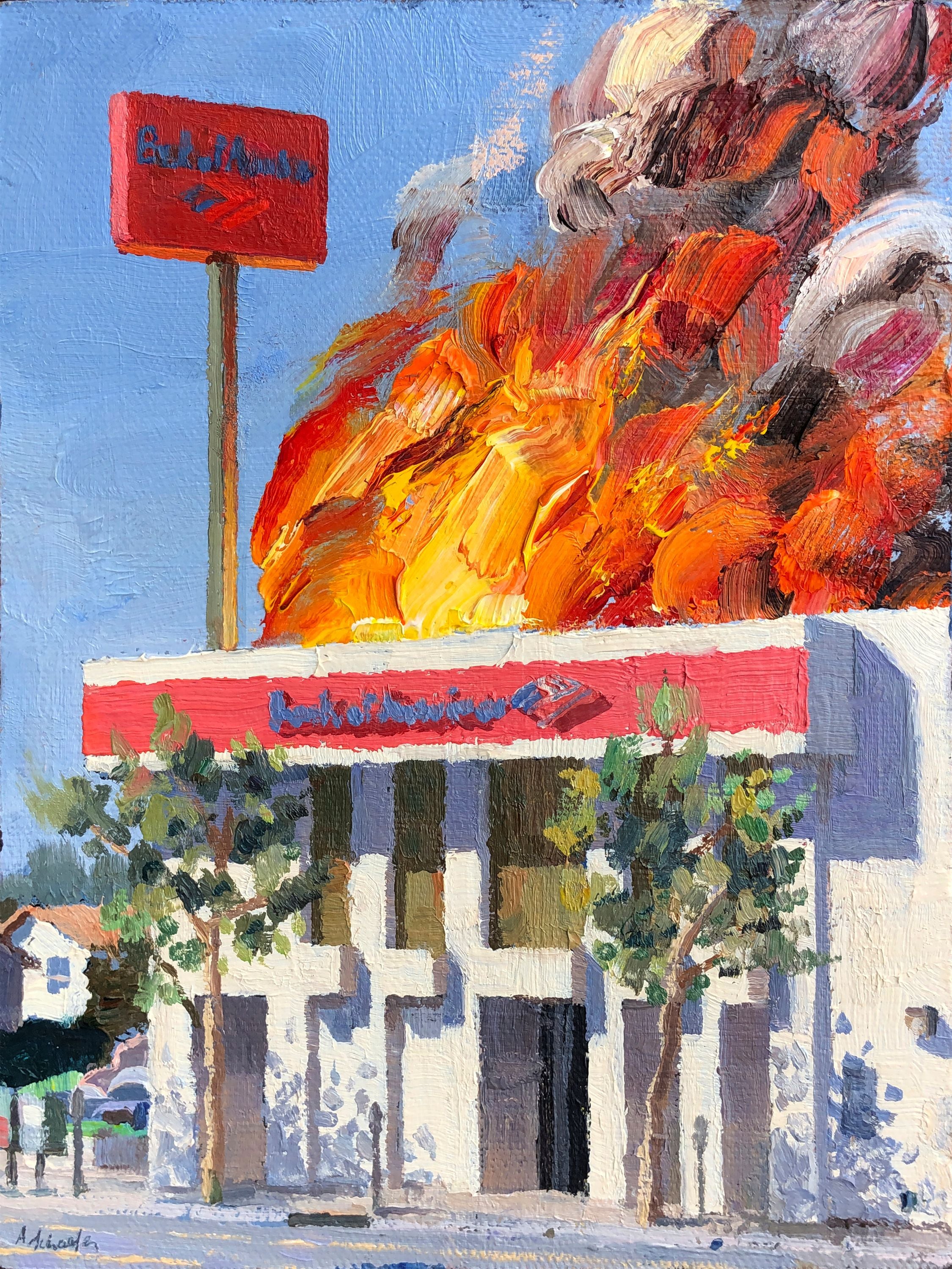 Sign up before 7th December, and you could stand a chance to win one of my prints 'Bank of America in Flames'.One lucky winner from my mailing list will be selected at random to receive the artwork.- Alex Schaefer