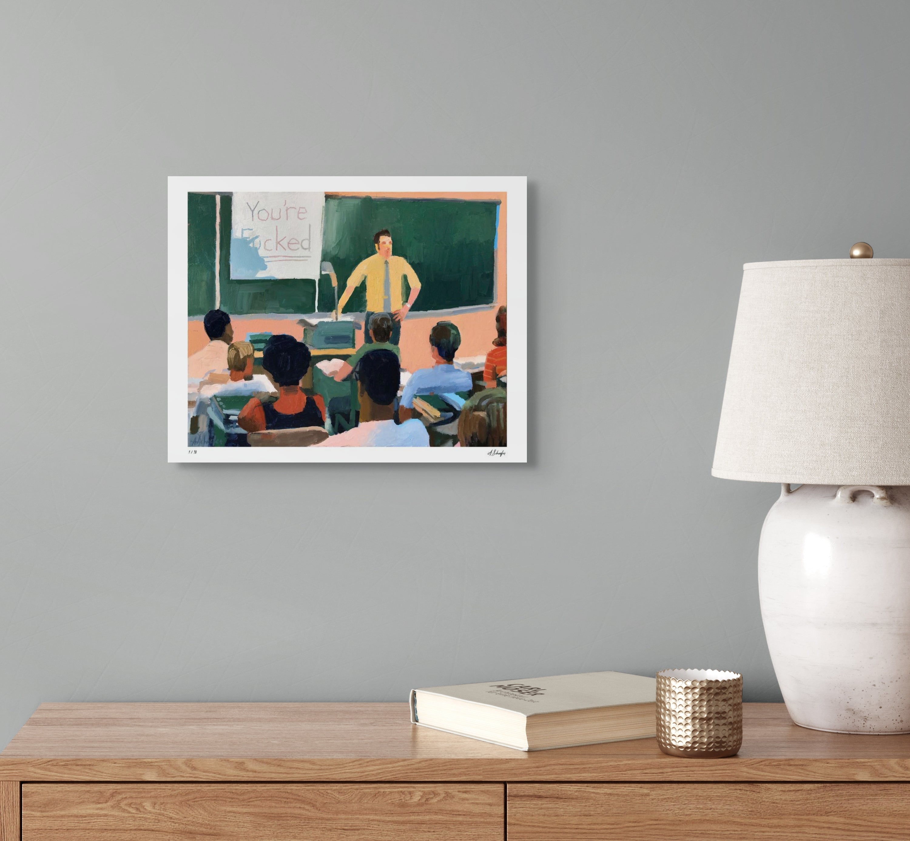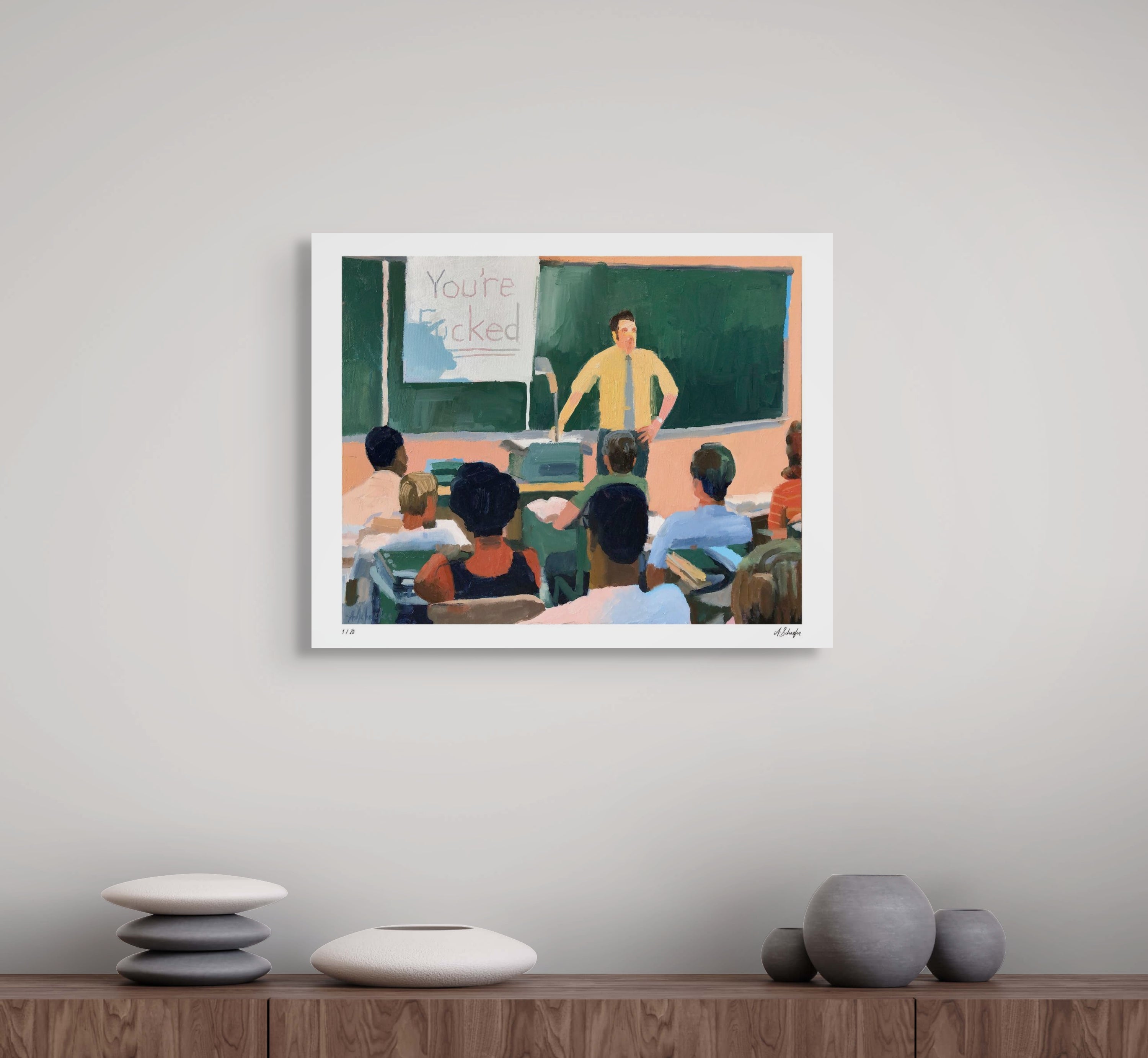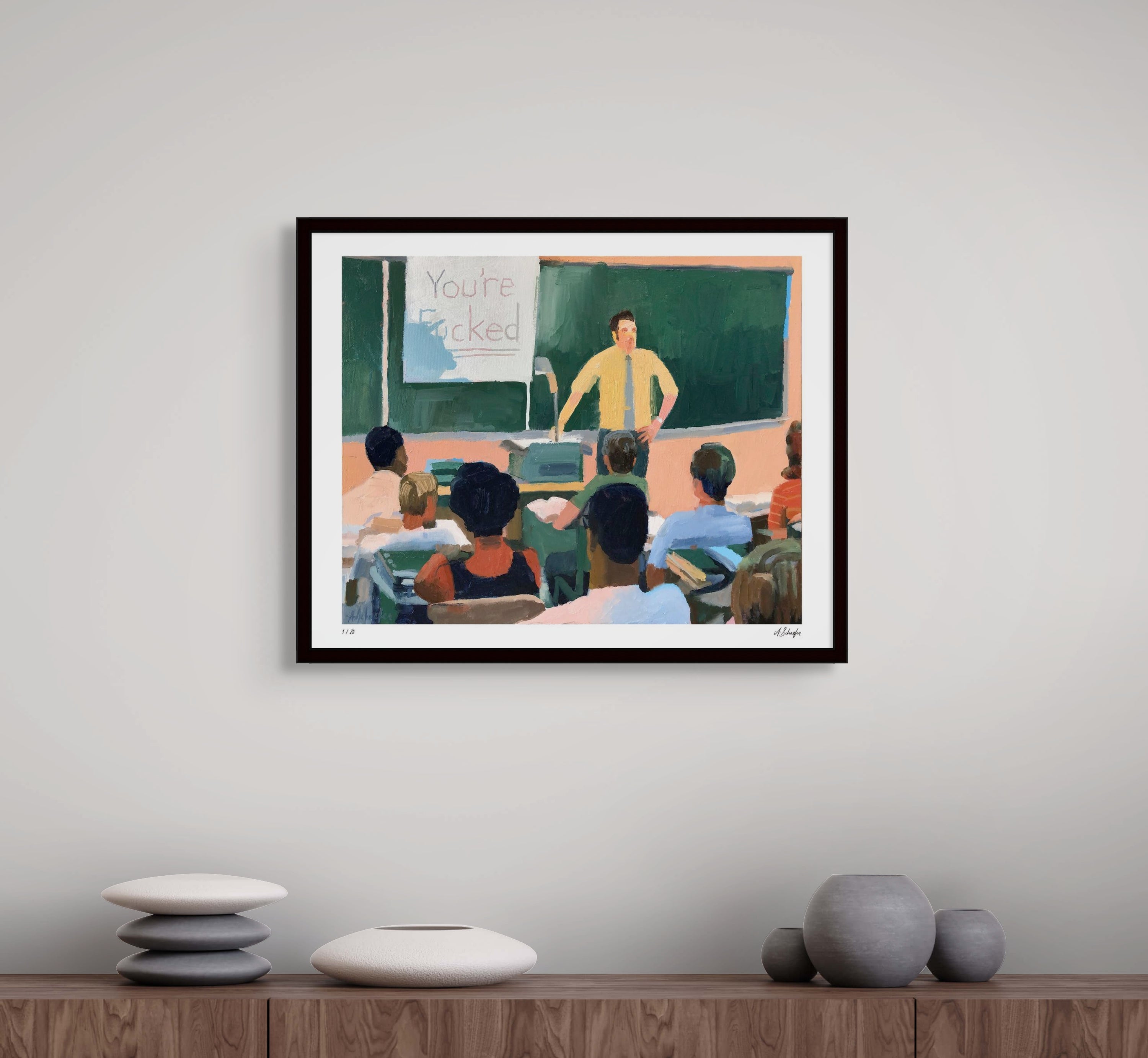 Oil on canvas - Hard lessons coming in hot from the overhead projector.